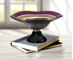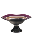 The rich, saturated colors of our Melrose Footed Bowl make it the perfect addition to any decor. The large footed bowl features an interior of concentric rings of alternating deep mauve ad variegated amber that are separated by thin strips of white for definition. The outside wall and flared pedestal are rich black, which provides a beautiful contrast to the colors inside. Hand blown using Favrile art glass, which embeds the color within the glass means that no 2 pieces are exactly alike; your bowl is a one of a kind. A wonderful centerpiece on a dining table or console, our Melrose Footed bowl is a beautiful way to display a grouping of glass ornaments or faux fruit yet makes a lovely statement display on its own.