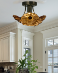 Our Burnt Sienna Lighting Series features floral inspired hand blown glass in rich amber tones that will add inviting warmth to any decor in your home or office. Each shade is crafted of individually hand blown Favrile art glass. Because the Favrile process embeds color within the glass itself, no 2 pieces are exactly alike ensuring yours is a one of a kind work of art. The bold styles and intense color of our Burnt Sienna Flush Mount will add rich warmth to any room of your home. This dynamic fixture features 3 large floral plates hand-blown in luxurious Favrile Art Glass. This dynamic 1 light fixture features 3 matching floral plates which are backlit by an integrated LED module which generates a warm glow throughout the room. The plates hang from a sleek copper bronze ceiling canopy. A lively choice over a dining table or in an entryway, our Burnt Sienna Flush Mount will soon become the bright focal point in any room in your home and will delight your family and guests for many years to come.