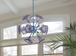 Our fabulous Yuri Purple 6 LT Hanging Fixture is a dazzling addition to any décor style in your home. The fixture features a round metal base, finished in gleaming Polished Chrome that is hung from a matching metal support tube. A series of 12 large Hand Blown Art Glass flowers in delicate purple radiate outward from the base in an eye- catching pattern. Because each blossom is hand blown, no 2 are exactly alike which means that your fixture is a one of a kind work of art. The fixture is illuminated by 6 candelabra bulbs (not included) whose light will be reflected off the glass and into the room when the fixture is illuminated. A magnificent choice over a dining area, our Yuri Purple 6 LT Hand Blown Hanging Fixture also makes a great way to greet guests when hung in foyers or entryways with higher ceilings.