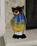 Our Big Owl Figurine adds a comical touch of color wherever he is perched in your home. Standing just under a foot in height, the statuette features a body crafted in swirls of blue, green and yellow that are overlaid with vertical stripes of textured silvery white that create a striped effect. His large, expressive eyes feature wide irises of striped amber surrounding deep black pupils. His legs are clear to separate his bold black feet for extra definition. The figurine is hand blown using Favrile art glass, which embeds the color within the glass to allow for subtle variations of color and texture. This means that no 2 are exactly alike and ensures yours is an incomparable work of art. A perfect accent piece to add a pop of whimsical color anywhere in your home, our Big Owl Figurine also makes the perfect gift for bird lovers of all ages.