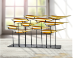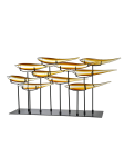 Always at the forefront of home design trends, Dale Tiffany is pleased to present our new collection of Fish Sculptures. Each sculpture portrays a school of stylized, elongated tropical fish that are hand blown using our superior quality art glass. Grouped together, each fish seem to be swimming in synchronous motion with the rest, giving the overall piece an appearance of fluid motion. Standing over 1 ½ feet in height, these unique pieces command attention and will easily become the focal point in any room. This 10 Piece Amber Fish Sculpture features 10 bright fish in sunny shades of amber, white and cream. Each fish sits in a bracket atop a stake that is mounted on a rectangular base. The perfect gift for the aquatic enthusiast or anyone who appreciates the new and exotic, our Art Glass Fish Sculptures make the perfect pet…no care or feeding required.