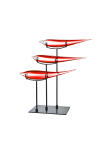 Always at the forefront of home design trends, Dale Tiffany is pleased to present our new collection of Fish Sculptures. Each sculpture portrays a school of stylized, elongated tropical fish that are hand blown using our superior quality art glass. Grouped together, each fish seem to be swimming in synchronous motion with the rest, giving the overall piece an appearance of fluid motion. Standing over 1 ½ feet in height, these unique pieces command attention and will easily become the focal point in any room. This 3 Piece Red Fish Sculpture features a trio of vibrant fish in bold shades of crimson, white and black. Each fish sits in a bracket atop a stake that is mounted on a rectangular base. The perfect gift for the aquatic enthusiast or anyone who appreciates the new and exotic, our Art Glass Fish Sculptures make the perfect pet…no care or feeding required.