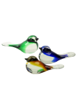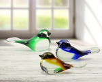 Our enchanting 3 Piece Bird Figurine Set will add a whimsical touch of color to any home or office. The set features a trio of chipper little songbirds. The main portion of their bodies is white with accents in light mint green, deep azure blue and warm golden amber. Their heads and beaks are a blend of white, accented with black. Clear glass tails provide an excellent balance. Each piece is hand blown using Favrile art glass. This means that no 2 pieces are exactly alike. Our 3 Piece Bird Figurine is a perfect choice anywhere needing a gentle pop of delightful color whether displayed individually or as a group. The set is also an excellent gift for the avian enthusiast. A delight to both the young and young at heart, our 3 Piece Bird Figurine Set is destined to become a family favorite that will be cherished for many years to come.