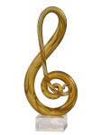 Our bold Musical Note Sculpture is a harmonious addition to any decor. The generously sized sculpture is hand blown in the shape of a treble clef in deep amber with glittery golden amber highlights from tip to tip. The sculpture is crafted of Favrile art Glass, which embeds the coloring within the glass itself. This process, along with the hand blown craftsmanship, allows for subtle variations in color, shape and tone. This means that no 2 pieces are exactly like another and ensures that yours is an unparalleled work of art. The sculpture sits atop a square base of clear glass to allow the beauty of the color to be the focal point. A marvelous accent on a curio shelf, bookcase or even a grand piano, our Musical Note Sculpture is the perfect one of a kind gift for the musician in your life that is destined to be appreciated for many years to come.