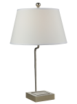 Always seeking new and trendsetting home decorating solutions, Dale Tiffany is excited to introduce our innovative Companion Lamp. An elegantly simple offset center column is mounted at one side of a square metal base with a crystal inset. The inset is designed to paired with any of our art glass figurines, thus creating a truly one of a kind table fixture whose style is as individual as you are. Our designers have paired the fixture with a sleek flared drum shade in crisp white fabric, which is designed direct the light from a 150W 3-way bulb (not included) over the figurine for a brilliant burst of sparkle and color. Our companion lamp is perfect for nightstands, end tables and larger desks. Your design options are limited only by your imagination when you pair our Companion Lamp with the figurine of your choosing.