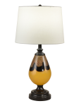 Our warm and inviting Keithia Hand Blown Art Glass Table Lamp features bright colors and a contemporary style to easily enliven any décor. The fixture features a center column that is enveloped with a large teardrop of Favrile Art Glass in bright golden yellow. Large ‘drips’ of light and dark amber run down the sides of the urn. The Favrile Process embeds the color within the glass itself. This allows for subtle variation in color, tone and texture which ensures that no 2 pieces are exactly alike. The round pedestal base is crafted of black marble atop a metal pedestal that is finished in rich Ebony Black. We topped Keithia with a white fabric drum shade and matching vase cap and finial. A perfect choice on end tables and night stands, our Keitha Hand Blown Art Glass Table Lamp is destined to become a cherished family favorite you will enjoy for years to come.
