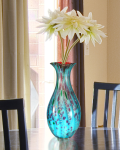 The soothing colors of our Lagood Vase will add easy design flair to your home or office. This stately urn vase features a base blend of sky blue that is accented with delicate multicolored drops and swirls throughout. The inside of the vase is a vivid red with gold swirls. Lagood’s height, gently tapered neck, and delicately ruffled mouth are all designed to accommodate even the tallest of your favorite blooms, making it a delightful centerpiece on a larger dining, console or entryway table. No matter where you choose to display it, our Lagood Vase will provide a dramatic accent to any decor.