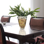The Saffron Series of vases and bowls from our Favrile Art Glass series will add warm, vibrant color to your home. Clear Favrile Art Glass is embedded with a rich swirl of yellow, amber, orange, blue and brown that is guaranteed to work well with any decor style. Our Saffron Braided Vase features a generously sized tapered cylinder vase that has all the elements of our Saffron Series with the addition of clear glass in a braided pattern at the vase’s top, along with a splash of clear bubbles at the bottom. A lovely choice for a dining table, mantle or buffet, this nicely sized vessel is beautiful on its own, but is also the perfect size to accommodate a bouquet of your favorite flowers. Each piece of our Saffron Series is hand blown using Favrile Art Glass. which means that no 2 pieces are exactly alike. This ensures that yours is a one of a kind, unparalleled work of art that you will proudly display for many years to come.