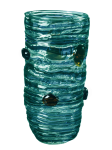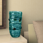 Our Canyon Rock Series of vases and bowls will be a peaceful addition to your lovely home. Each piece starts with clear art glass into which our artisans have infused an airy shade of aquamarine blue. Art glass “jewels” in warm golden amber provide an extra element of color and texture to each piece. The overall effect of the soothing blues and warm amber is a well balanced piece that will accentuate any decor. This tall cylinder vase is the perfect size to showcase your favorite spring flowers, but is also stunningly beautiful when displayed alone. Each item is hand crafted using Favrile Art Glass, which embeds the color within the glass. This process ensures no one piece is exactly like another and your Canyon Rock item is a one of a kind work of art that does double duty as a functional vessel for your favorite flower or decorative item.