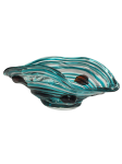 Our Canyon Rock Series of vases and bowls will be a peaceful addition to your lovely home. Each piece starts with clear art glass into which our artisans have infused an airy shade of aquamarine blue. Art glass “jewels” in warm golden amber provide an extra element of color and texture to each piece. The overall effect of the soothing blues and warm amber is a well balanced piece that will accentuate any decor. This magnificent bowl is the perfect way to showcase your favorite collectables or potpourri, but is also stunningly beautiful when displayed alone. Each item is hand crafted using Favrile Art Glass, which embeds the color within the glass. This process ensures no one piece is exactly like another and your Canyon Rock item is a one of a kind work of art that does double duty as a functional vessel for your favorite flower or decorative item.