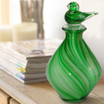 Always at the forefront of home design trends, Dale Tiffany is pleased to present our Favrile Art Glass Collection Home Accents. The collection features an array of one of kind items that are a superb blend of form and function that will easily enhance any decor style. The tranquil tones of this Large Green Bottle will add relaxed beauty to any room. The flared bottle style vase is adorned with graceful brush strokes of green, blue and clear glass swirled together, which gives the bottle its fluid feel. The bottle tapers, then flares at the neck and is topped by a stopper with a delightful songbird in matching colors. A pretty centerpiece on a dining table, console or entryway table, our Large Green Bottle also makes a very thoughtful gift whose recipient will cherish and appreciate for many years to come.