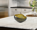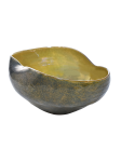 Dale Tiffany is thrilled to present our Prismatic home accessories collection. A breathtaking combination of color and texture, Prismatic is crafted of hand blown Favrile Art Glass, which means that no 2 pieces are exactly alike and ensures that yours will be a one of a kind work of art. This beautiful Prismatic Bowl is a generously sized free form round with an abstract edge. The outer wall is textured in a pebbly pattern in a lush green that is blended with a gold luster finish. The gold luster is carried over to the interior wall, creating a gentle sparkle, which catches the ambient light and reflects it outward into the room. A lovely way to display your favorite fruit or glass ornaments, the bowl is a dramatic centerpiece on any table and makes a very thoughtful gift for any occasion whose recipient will proudly display in any decor.