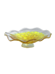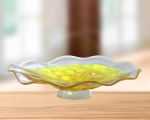 This delicately beautiful Art Plate Decor is the perfect accessory for today’s modern home design trends. The lovely ruffled plate features an allover texture with a pretty swirling of light amber at the plate’s center that is surrounded by a border of frosted clear at the plate’s fluted edges. The plate sits atop a inverted round pedestal that is gently tinted with matching light amber. A lovely piece on a dresser, dressing table or vanity, our Art Plate Decor also makes a lovely gift for any occasion that can also be used to hold smaller pieces of your favorite jewelry.