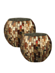 Our Bella Terra 2-Piece Mosaic Art Glass Candle Votive Set is the perfect design accessory to add sparkling warmth to any décor. The set includes a pair of matched round votives that are crafted of variegated amber toned art glass pieces that are set in a meticulous mosaic pattern. The combination of amber tones will cast a bright sparkle about the room when you place a lit votive candle within the holder (candle not included). A perfect pop of warmth tucked away on bookcase or curio shelf, our Bella Terra 2-Piece Mosaic Art Glass Candle Votive Set is also a great gift for any occasion that will be gratefully displayed for many years.