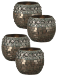 This 2 piece Egyptian Candle Holder set will add a touch of glittery shine to any decor style. Matching votive holders each has a base of silvery hazelnut art glass, set in a mosaic pattern. The top of each features a band of glittery silver art glass pebblestones. These lovely candleholders will cast a silvery shower of sparkles about the room when you place a lighted candle inside. Our Egyptian Candle Holder Set makes the perfect gift for yourself or any candle enthusiast that is designed to be enjoyed for a lifetime.