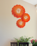 Our Titan Series transforms luxurious hand blown Favrile Art Glass to into stylish wall decor plates. The delightfully scalloped edges of the Titan 12" hand-made design will be the conversation piece in any room. This lovely plate has a swirls of red, orange, and amber colors that begin at the center and swirls outward to the plate's rim. Each plate includes a hanging bracket for wall use. You can also use them as a decorative centerpiece on a dining or occasional table. Since every Dale Tiffany piece is individually crafted, no two are exactly alike!