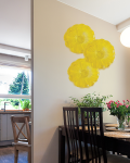 Our Tawny Gold Wall Art adds a vibrant splash of color to any room in your home. This large 16 inch round is hand-blown in the shape of a large golden flower with a clear base using Favrile art glass. The Favrile process embeds the color within the glass itself, allowing for subtle variations in color, tone and texture. This means that no 2 pieces are exactly alike and that yours will be a one of a kind work of art. The plate hangs from an included wall bracket, or it can be used as a conventional plate and displayed as a striking centerpiece on a dining or console table on its own or filled with small collectable items. Our Tawny Gold Wall Art also makes a wonderful gift for a wedding, housewarming or any occasion whose recipient will gratefully display for many years to come.