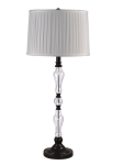 The dramatic beauty of our Theola Hand Cut 24% Lead Crystal Buffet Lamp is a show stopping focal point in any room in which it is displayed. The stately fixture’s metal base is beautifully finished in modern Ebony Black that features a flared pedestal for stability and vase cap and column breaks. The center column is adorned with twin abstract geometrics that are crafted of 24% lead crystal. Each piece is gently hand faceted in a delicate design for a pretty shimmer when Theola is lit. An elegant round orb in matching 24% lead crystal at the center adds more texture and sparkle. Theola is elegantly crowned with a pleated drum shade in white softback fabric and crystal orb finial to finish the look. Absolutely stunning when displayed in pars on a console tables or buffets, our Theola Hand Cut 24% Lead Crystal Buffet Lamp is built to last to provide you with many years of reliably artistic lighting.