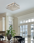 Our Ibiza flush mount is an exceptional blend of traditional style and modern flair that will easily accentuate any decor style in your home. The metal base and center support tube are finished in sleek polished chrome. At the fixture’s bottom, a metal fount features 4 scrolled arms. Each arm is accented with cut crystals and is topped by more crystals in upper layer. A lovely fixture over an elegant eating area, our Ibiza flush mount is also an ideal ceiling fixture in rooms with lower ceilings. Wherever you choose to hang it, our Ibiza is crafted to last and will provide your family with years of elegant, reliable lighting.