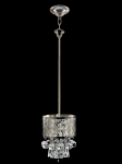 Our sumptuous Silver Leaf Mini Pendant is a lovely combination of texture that will easily accentuate any decor in your home. The metallic fabric drum shade is crafted in a mesmerizing cut leaf pattern. Just underneath hangs a series of crystal beaded chains that are surrounded by elongated crystal spears, surrounded by another layer of beaded chain featuring polished crystal orbs at their ends. The combination of crystal shapes and textures ensures maximum light refraction when the pendant is lit. Silver Leaf makes a bold statement when hung by itself. Try displaying in multiples over a bar or island for a magnificent effect.