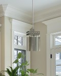 Our stunning Bradford Crystal Mini Pendant is a contemporary classic that will accentuate any decor in your home well into the 21st Century and beyond. The lovely square shade begins with a metal framework at the top that is finished in glistening Polished Chrome. A row of 5 faceted crystal jewels runs along the top of each of the 4 sides. Just below, hangs a row of 6 elongated crystal spikes that wrap around the light fixture within to create the body of the shade. Each spike hangs freely to create movement and a shower of sparkles from the 60W bulb (bulb not included) when the pendant is illuminated. Bradford hangs gracefully from a metal ceiling canopy and sleek metal tube, both finished to match the framework in sleek Polished Chrome. An ideal choice when hung in multiples over an elegant bar, kitchen island or gaming table, our Bradford Crystal Mini Pendant will provide your family with a lifetime of elegantly reliable lighting no matter where you choose to hang it.