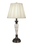 The beautiful facets in the tapered crystal column in our Vena table lamp will shower any room with glittering sparkles. Standing a full 27.5” high, this lamp has a commanding presence. Our designers have added a simple, white pleated fabric shade to create a balance to the design. The solid metal base is finished in gorgeous oil rubbed bronze to complement the crystal. Solid crystal and a solid metal base give this lamp the old-fashioned artisan look that you have come to expect from Dale Tiffany at a price that will fit into any budget.