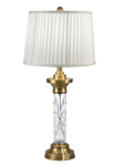 Our contemporary Ailin 24% Lead Crystal Table Lamp is the perfect finishing touch to any room’s décor. The pretty fixture features a center column that is wrapped in a 24% lead crystal cylinder. The cylinder is faceted in an allover starburst pattern that will cast a shower of sparkles about the room when Allin is lit. The metal base is finished in burnished Antique Brass and features a tall, stepped pedestal base and matching vase cap. We paired Ailin with a pleated drum shade in white softback fabric and added a complementary finial to complete the look. A lovely choice when displayed in pairs on matching end tables or nightstands, our Ailin 24% Lead Crystal Table Lamp will soon become a cherished family heirloom to be passed from one generation to the next.