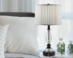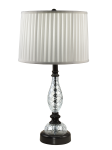 A delightful combination of traditional style with a modern twist, our Acacia Hand Cut 24% Lead Crystal Table Lamp will easily assimilate into any décor. The lamp features a center column that is encased in a large teardrop crafted of 24% lead crystal. The crystal is beautifully hand cut in an allover crosshatch pattern that is designed to reflect and refract the lamplight outward into the room in an effervescent shower of sparkles. The metal base is finished in contemporary Ebony Black and features a round pedestal and coordinating column break. We added an oval of 24% lead crystal atop the pedestal that is hand cut to match for even more shimmer. The drum shade is crafted of pleated white fabric that beautifully enhances the overall design. A great choice in living rooms, bedrooms, and offices, our Acacia Hand Cut 24% Lead Crystal Table Lamp is crafted to last to provide you with many years of artistically reliable lighting