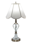 Our Aegis 24% Lead Crystal Table Lamp is a pretty combination of vintage style and contemporary sparkle that will easily assimilate into any décor in your home or office. The lamp features a center column that is wrapped with an inverted teardrop crafted of 24% lead crystal gently faceted with a floral motif. We added a sound reeded flange, also crafted of 24% lead crystal. The metal base is finished in smooth Antique Nickel and features a round pedestal, matching column break and vase cap. We paired Aegis with a scalloped shade in white softback fabric and topped it with a crystal finial to complete the look. A lovely choice in living rooms, dens or offices, our Aegis 24% Crystal Table Lamp will provide your family with many years of beautifully reliable lighting.