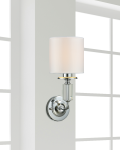 Our opulent Gretel Wall Sconce features contemporary lines and state of the art technology to light your home into the 21st Century. Gretel’s metal center column is wrapped with a solid crystal tube. The round metal backing plate is finished in sleek Polished Chrome and features a large solid crystal disk surrounding the wall arm joint. We topped Gretel with an elegant white fabric drum shade, designed to enhance the beauty of the crystal and chrome. Gretel comes equipped with our innovative LED module that features a lifespan of approximately 50,000 hours to provide you with a lifetime of worry free, energy efficient lighting. Great for entryways and hallways, our Gretel Wall Sconce’s versatility makes it the perfect lighting solution for your every lighting need.