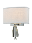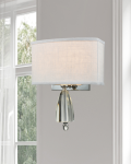 This sleek Crystal Wall Sconce adds a contemporary touch of elegance to any decor. Mounted on a metal backing plate and wall arm, both finished in shimmery Polished Chrome, the center column is finished to match, then wrapped in an inverted teardrop of solid crystal. We added a crystal button finial for even more sparkle and shine. The fixture is topped with a rectangular shade in crisp white fabric that is designed to direct the light downward over the crystal for maximum light refraction. An elegant way to greet guests when hung in a foyer, our dazzling Crystal Wall Sconce makes a truly stunning statement when hung in multiples around the perimeter of a room for elegant whole room lighting you will proudly display for many years to come.