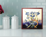 Our Iris 2-PC Hand Painted Decorative Wall Art is an easy way to add just the right finishing touch to any room’s décor. The set includes a generously sized pair of hand painted porcelain rectangles depicting a lovely grouping of vibrant blue irises against a background of deeper blue and light yellow. Light green and amber foliage add extra color and realism. Hand painting means that no 2 pieces are exactly alike and ensures that each is a one of a kind work of art. Each portrait is framed in a light wooden tones to complete the look. A pretty choice in a living room, bedroom, kitchen or office, our Iris 2-PC Hand Painted Decorative Wall Art also makes a lovely gift for a housewarming or any special occasion.