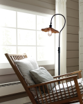 Our Burnt Sienna Lighting Series features floral inspired hand blown glass in rich amber tones that will add inviting warmth to any decor in your home or office. Each shade is crafted of individually hand blown Favrile art glass. Because the Favrile process embeds color within the glass itself, no 2 pieces are exactly alike ensuring yours is a one of a kind work of art. This pretty floor lamp features a generously sized shade, artfully suspended from a curved metal downbridge arm. The support tube and sleek round pedestal are all finished in burnished Copper Bronze. Wired to accept a 60W bulb (not included) the fixture is a perfect reading lamp next to your favorite chair or sofa. Our Burnt Sienna Floor Lamp does double duty as functional lighting fixture and illuminated work of art that will be the focal point of any room for many years to come.