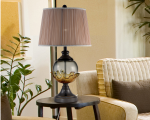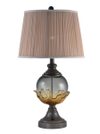 Ever pushing the envelope in home decor trends, Dale Tiffany is pleased to present our Bonnie Table Lamp. Bonnie’s center column is surrounded by a generously sized round urn in smoky art glass. The urn then sits inside a large ruffled bowl crafted of textured glass to match. The large metal base is an elongated pedal finished in sleek Oil Rubbed bronze. The pedestal sits atop a glass round that matches the urn and bowl. Bonnie is topped with a pleated drum shade in natural fabric to cast a gentle warm glow from the included dimmable LED Module. A metal vase cap and finial finished to match the base finishes the design. Bonnie is perfect for bedrooms, dens, or offices. No matter where you choose to display it, our Bonnie Table Lamp is crafted to last and will provide you with a lifetime of energy efficient, artistic lighting,