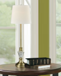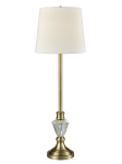 Long and sleek, our Curzon Crystal Table Lamp features classic style that blends perfectly with today’s interior design trends. The stately fixture touts a tall center column that is finished in lustrous Antique Brass. Near the bottom, a tapered column break crafted of clear crystal will capture the light from the lamp and shower the room with sparkles. The lamp sits atop a stepped round pedestal that is finished to match in Satin Nickel. We topped the tall center column with a slightly flared drum shade in crisp white fabric that will direct the lamplight down over the crystal. A lovely choice on larger end tables, our Curzon Crystal Table Lamp is also ideal on smaller buffet tables or consoles that will provide you with many years of elegant, refined lighting.
