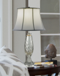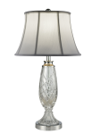 A classic look that accentuates today’s modern interior design trends, our Claven 24% Lead Crystal Table Lamp is a sumptuous addition to any room. The luxurious fixture features a large crystal teardrop surrounding the center column. Crafted of 24% lead crystal and faceted in a crosshatch pattern, the teardrop sits atop a flared crystal pedestal that is faceted in a reeded pattern. A round pedestal base, finished in gleaming Polished Chrome adds extra shine. We topped Claven with a flared white fabric shade with wide seams and borders to enhance the beauty and sparkle of the crystal and added a crystal finial to complete the look. A lovely piece on end tables or nightstands, our Claven 24% Lead Crystal Table Lamp is destined to become a cherished family heirloom piece to be passed from one generation to the next.