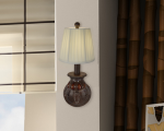 Our Gable Wall Sconce is a wonderful blend of old fashioned craftsman ship and contemporary style that make it the ideal choice to solve any lighting need. Gabe features a bronze urn base that is finely textured and finished in Antique Bronze. Our designers added insets in rich amber art glass for extra color and texture. We paired the sconce with a pleated shade in natural fabric and topped it with a matching finial to complete the look. Gabe hangs from a bronze wall arm and backing plate that are both finished in matching Antique Bronze. A wonderful fixture in smaller spaces, try displaying our Gabe Wall Sconce in multiples down a hallway or around the perimeter of a larger room for a beautiful designer look you will enjoy for many years to come.