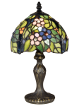 Our pretty Lucia Floral Tiffany Accent Lamp brings a taste of the great outdoors inside any room in your home or office. The lamp features a deep dome shade depicting an allover floral pattern of delicate pink, white, yellow and blue flowers that are nestled amidst a verdant leafy green background. Each blossom is dotted with an art glass gem at its center for added texture and sparkle. Lucia’s metal tree trunk base is finely cast and finished in lustrous Antique Brass. A matching vase cap and finial complete the look. Ideal for bedrooms, living rooms or offices, our Lucia Floral Tiffany Accent Lamp also makes an ideal gift for any occasion.
