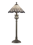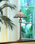 Our Artie Buffet Lamp’s sleek lines and contemporary style ensures its the perfect fit for any room in your home. The tall fixture features generously sized cone shade crafted of large wedges of white art glass that are separated by bold filigree. Near the shade’s bottom, wedges of natural art glass are placed between the white to create a fan-like appearance. The shade’s bottom edge is bordered in a dark amber ribbon that is dotted with clear glass gems for added texture and sparkle. The base is finished in Antique Golden Silver and features a beautifully cast vase cap with light blue art glass accents, a swirled center column and flared pedestal. We topped the shade with a ball finial finished to match in Antique Golden Silver. A perfect choice for consoles, buffets or larger end tables, try displaying our Artie Buffet Lamp in pairs or multiples for a truly dazzling effect your family will enjoy for years to come.