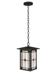 The combination of color, shape and texture in our chic Mayan Outdoor Mini Pendant will easily accentuate any outdoor decor in your home. The pretty square shade features 4 large rectangular panels of frosted art glass at the center. These are bordered by smaller rectangles of light amber and accented by filigree in black. We added a large diamond shaped art glass gem in rich amber at the center of each panel, along with matching square gems at each corner for added sparkle and visual interest. Encased in a metal frame with a sloped pagoda style roof, Mayan hangs from a round metal ceiling canopy and chain. All the metalwork is finished in rich Tiffany Black, which easily incorporates into its surroundings. A great fixture for porches, patios or entryways, our Mayan Outdoor Mini Pendant is as durable as it is beautiful, allowing you to proudly display it for many years to come.