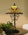 The golden rich tones and textures of our Jerome LED lighting will add friendly warmth to any room of your home or office. The conical shades feature a background of buttery light amber. A zigzag ribbon of warmer amber art glass squares runs around the circumference of the shade, which is beautifully balanced by a border of amber glass jewels along the contoured edge of the shade. Each fixture is fitted with dimmable LED modules to reduce energy usage and eliminate the need to change spend bulbs throughout the entire life of the lamp. Our lovely Jerome Table Lamp features a stepped pedestal round with a matching center column and gracefully scrolled elongated arms, all finished in warm Tiffany Bronze. An amber glass sphere sits atop the pedestal, providing added texture and visual interest. A perfect fixture for nightstands and end tables, our Jerome Table Lamp will grace your home for years to come, providing you with stylish and economical lighting service.