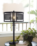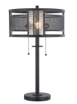 Our Griffin Table Lamp adds a chic industrial feel to any decor in your home or office. The fixture features a metal drum shade, finished in Dark Antique Bronze. A horizontal band of mesh runs around the shade’s circumference that feature vertical bands of deep amber art glass bordered with clear panels on either side The sleek metal base is finished to match the shade in Dark Antique Bronze, features a round pedestal and decorative column break just beneath the shade. A matching finial tops off the look and creates overall balance. An ideal choice on matching end tables or nightstands, our Griffin Table Lamp is built to last with a style that will grace your home for many years to come.