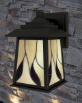 The graceful, natural appeal of our Geologic Outdoor Wall Sconce is a charming addition to any outdoor space in your home. The lovely pagoda style shade features a leaf design on each of its 4 sides. Large leaves in gentle amber at the top are accented by white leaves at the bottom. A pair of deep amber insets adds texture and a pop of vibrant color when Geologic is illuminated. The shade is encased in a metal frame and is topped with a stepped pagoda roof and mounts from a square metal backing plate and wall arm, all finished in contemporary Oil Rubbed Bronze. A pretty way to light a covered porch, patio or breezeway, our Geologic Mini Pendant is destined to become a family favorite.