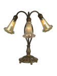 The shade of the 3-Light Gold Lily Accent Lamp is hand blown using the finest art glass. The colors and shape of the 3-Light Gold Lily Accent Lamp will not just illuminate but decorate any space in your home.