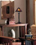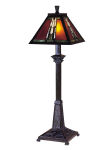 Deep, dark and rich, the Amber Monarch Buffet lamp from our Classic Mica Collection is at home in any stately mansion as it will be in your home. Each of the four amber mica panels of the shade has a glass inset in complimentary colors. A footed base has pebble texture and is finished in mica bronze. This makes an excellent accent light in a study or den, or for a spectacular effect, try a pair on a buffet in your dining room.