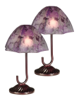 The ethereal beauty of our Purple Umbrella Votive holder will enhance any decor style in your lovely home. The shade is lovingly crafted by hand in lavender purple art glass. A lovely floral motif in complementary colors has been hand painted in reverse on the inside. The delicate colors of the shade will suffuse a gentle glow when a lighted votive candle is placed within the holder. The shade sits on a gracefully curved pole atop a gently domed pedestal that is cast with a reeded style. A lovely gift for the candle enthusiast or the special woman in your life, our Purple Umbrella Votive Holder will be a cherished keepsake that will be enjoyed for many years to come.