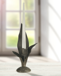 Simple yet elegant, our Lily and Leaves Votive Candle Holder is a lovely addition to any decor. The stately figurine features a cut leaf candle cup atop a round base that is complete with cast leaf detail. Long, graceful cut fronds of varying length in the shape of a lily blossom surround the candle cup. The cup can accommodate both a votive or taper candle, which increases your design options. Our Lily and Leaves Votive Candle Holder is a lovely piece when displayed alone on an occasional table, try using tapers and displaying in pairs or multiples as a breathtaking centerpiece on a dining table your family and guests won’t soon forget.