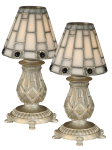 This votive holder adds a delicate touch of vintage Tiffany style and charm to your home or office. Proving that good things do come in small packages, this darling Tiffany Candle Votive’s shade is handcrafted of the same art glass Louis Comfort Tiffany used in his full size masterpieces. Alabaster art glass panels, set in a thatched pattern, are hand rolled and individually copper foiled. Alternating panels of silver along the shade’s bottom are set with art glass jewels. A matching silver band runs around the top of the shade. The antiqued base features an intricately cast urn sitting in a similarly cast footed bowl. A lovely accent piece in any decor style, this Tiffany Candle Votive will add the same grace and charm as its larger counterparts.