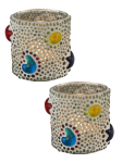 Our Bead/Star Candle Holder Collection features crisp backgrounds, combined with colorful textures and shapes that is designed to easily accentuate any decor style. Alabaster white backgrounds are dotted with an array of clear art glass jewels. Each shade is embellished with a variety of art glass jewels and stars in red, blue and yellow, which adds just the right pop of color and texture. This small Candle Votive is perfect for a bedroom, powder room or family room. Lovely on its own, try dotting the room with several for a colorful splash of texture, color and sparkle that will brighten any decor for many years to come.