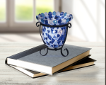 Vivid shades of blue and white make our Blue 2-Piece Mosaic Candle Holder Set a bright addition to any décor. The set features 2 cup style candle holders. Each is crafted of art glass in variegated shades of blue and white. We added clear glass gems in the body and a row of blue and white glass gems around the top for added sparkle and color when you add a lighted votive or tea light candle (candle not included). The set includes black metal holders with scrolled feet for display. A lovely gift for any occasion or even for yourself, our Blue 2-Piece Mosaic Candle Holder Set is destined to become a family favorite.